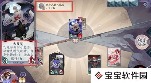 1、大天狗开局就有15点生命,敌方每有一名式神气绝时就减少一点自身“倒计时”,永久获得+1力量,大天狗气绝之后,只要两个回合就能复活,能使他更快地回到战场。