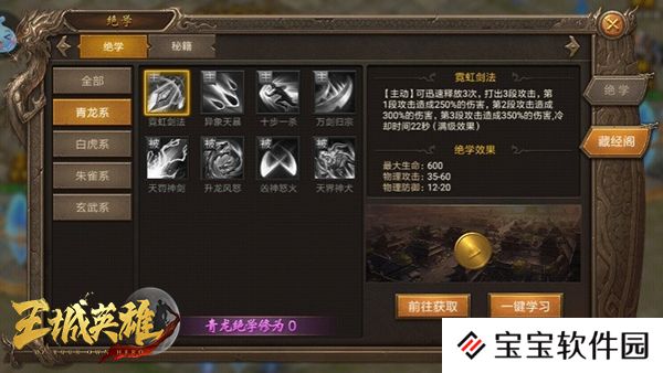 搭配解析:霓虹剑法虽然一剑比不上其他绝学,但是他可以造成3次900%的伤害,并且秘籍效果第一剑100%概率**,第三剑对于30%血量以下的多额外造成100%伤害。我们十步一杀一顿输出,对方正要还手再来一击霓虹剑法,从天而降在**你1秒, 快速按完剩下2剑对方已经空血。