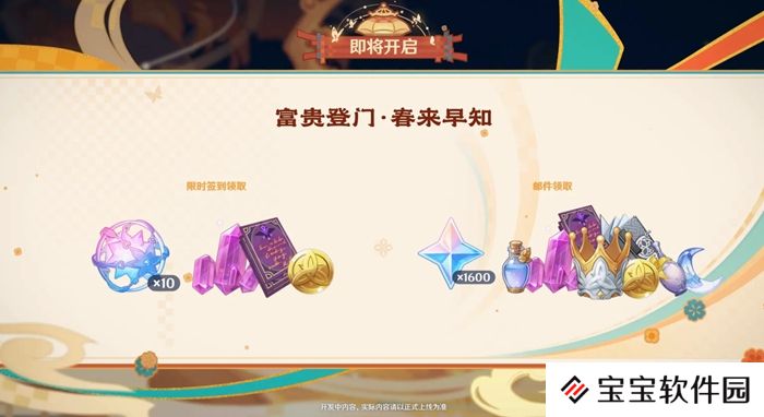活动期间,旅行者参与限时签到活动,可领取包含纠缠之缘×10在内的奖励。此外,登录游戏还可以通过邮件领取原石×1600等奖励。