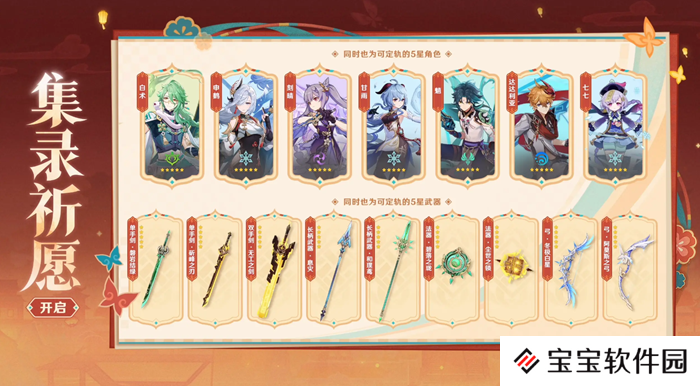 5.3版本期间,将开启「集录祈愿」,可定轨部分复刻角色和武器。