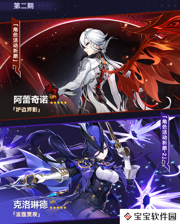 2、第二期:抽取阿蕾奇诺(仆人)、克洛琳德这两位角色的概率将大幅提升。