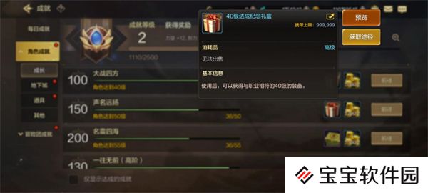 在角色成就-成长中,当角色达到30级、40级、50级时,都会赠送一身高级装备,小伙伴们在升级时一定要及时领取穿上,更高的伤害能显著提高通关时间。