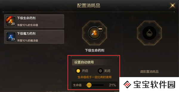 一定要设置自动使用药水功能,推荐生命值低于20%左右自动使用。20%左右时,已经到了空血边缘,自动使用药水,可极限节约复活币。